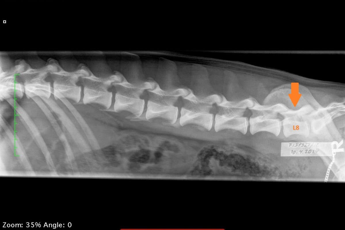”Dogs of medium and large size of breed can suffer from a condition called lumbosacral transitional vertebrae (LTV), which means that the dog has a malformed vertebra in the caudal end of the spinal cord. Different types of LTV exist and radiographic screening is used to determine the form of LTV in dogs. The disorder can be seen right after birth and it is hereditary.”